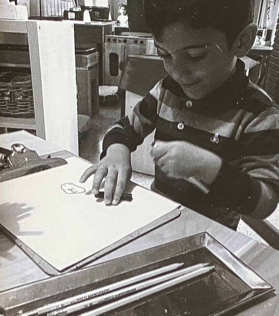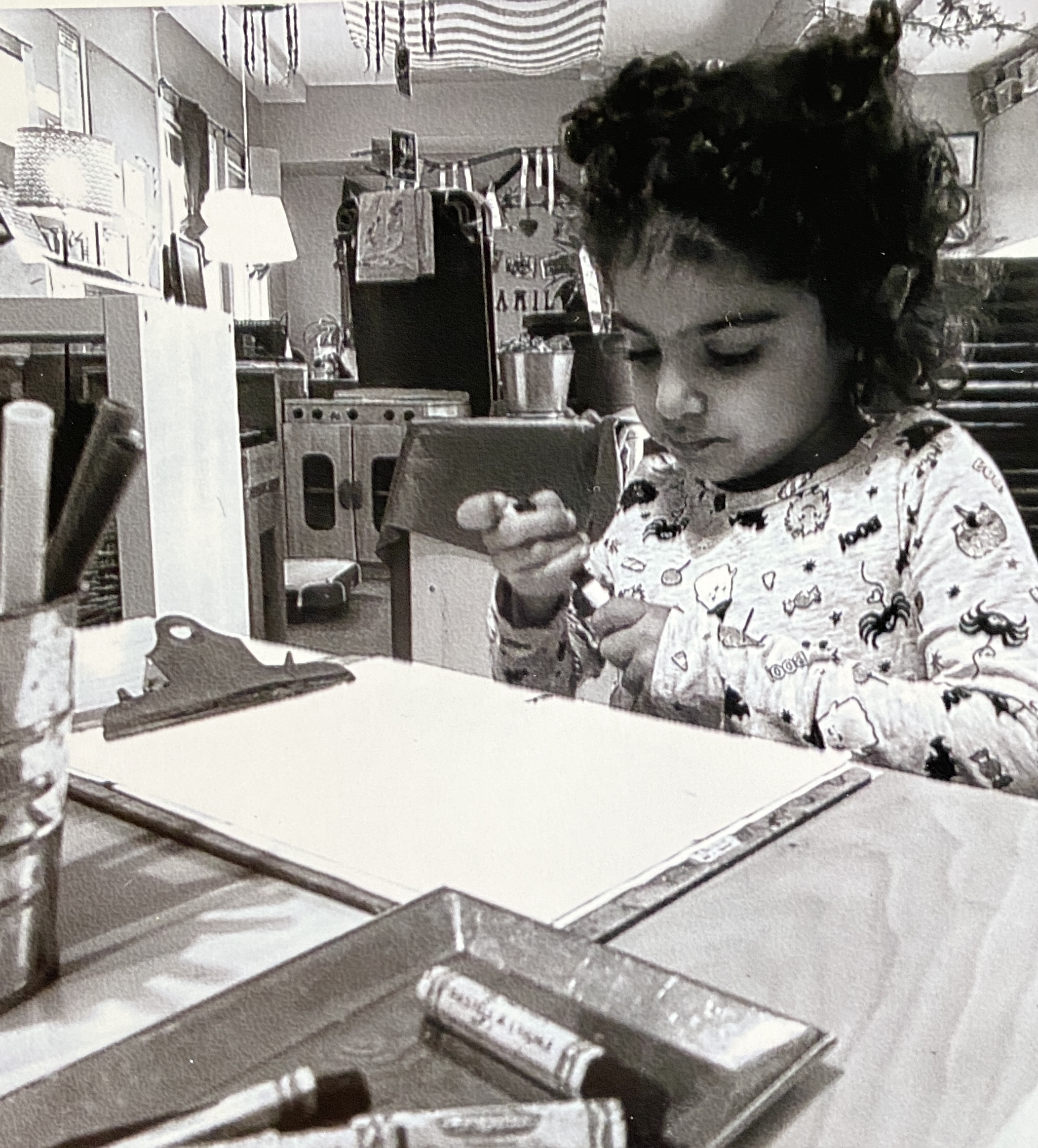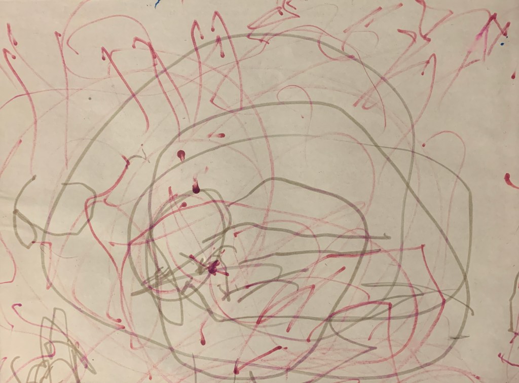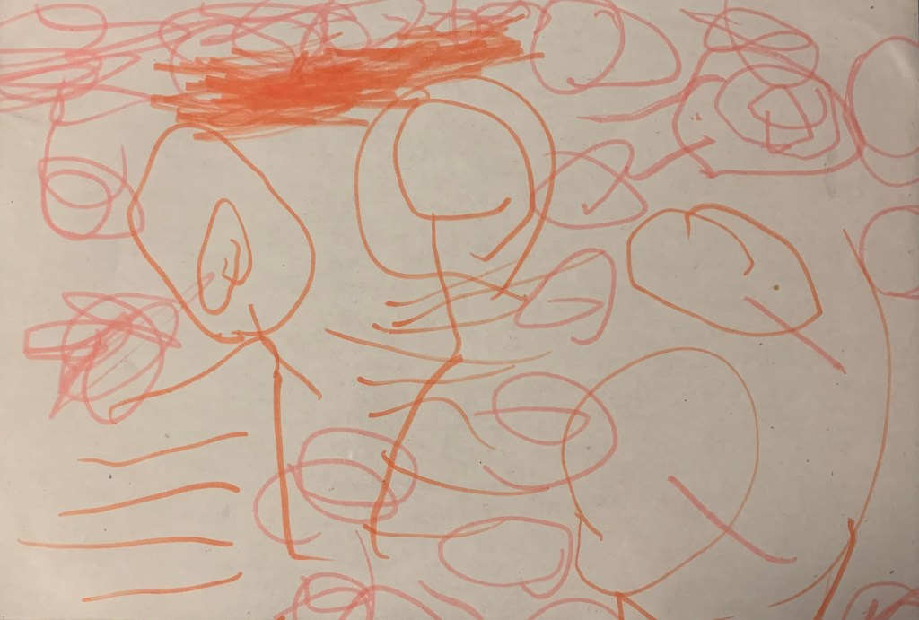 “That’s the sadness. You cry. I just drawed it. Pink made me happy.”