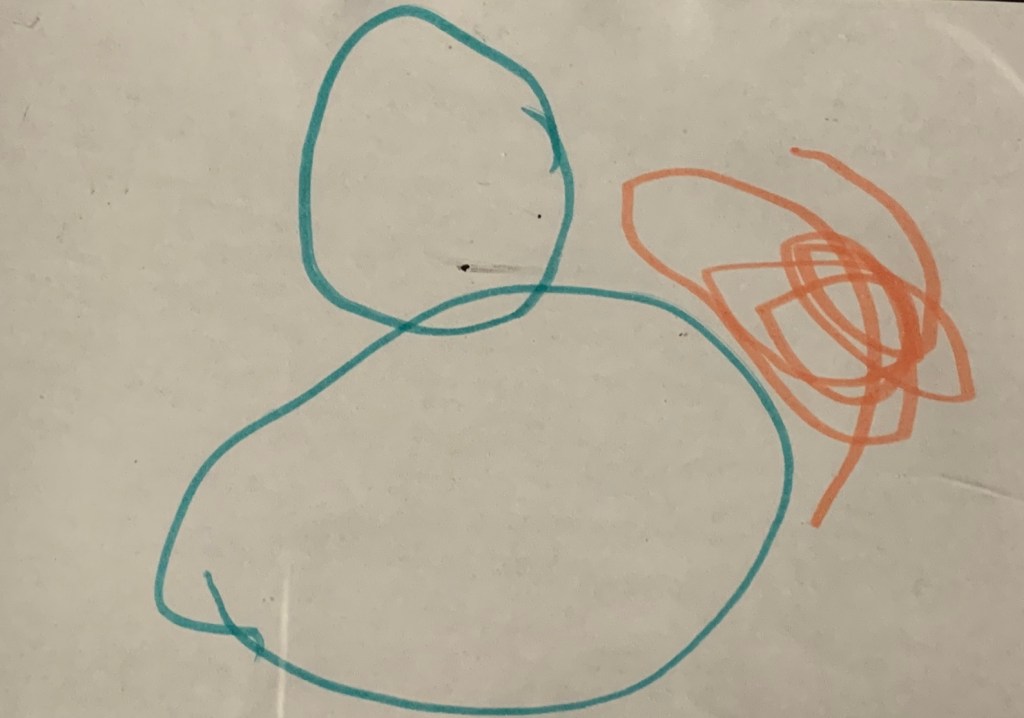 During some one on one time with the children I took the opportunity to offer the children the sounds from the clip, “In My Own Time, In My Own Way”. A table was set up with a variety of drawing materials and clipboards with paper. After listening to the sounds and having a discussion about feeling sad I asked the children, “What is something that makes you feel better when you are sad?”