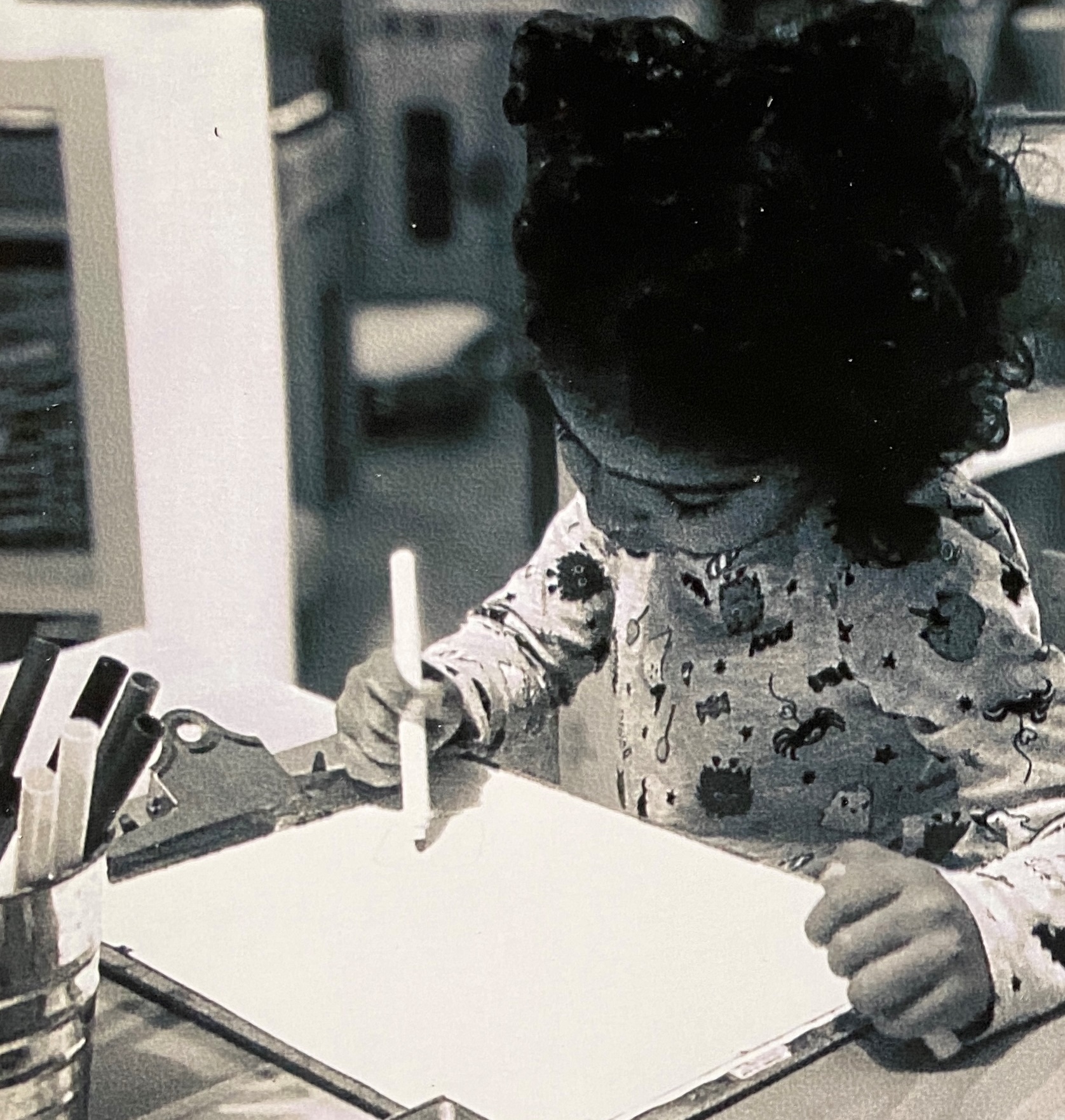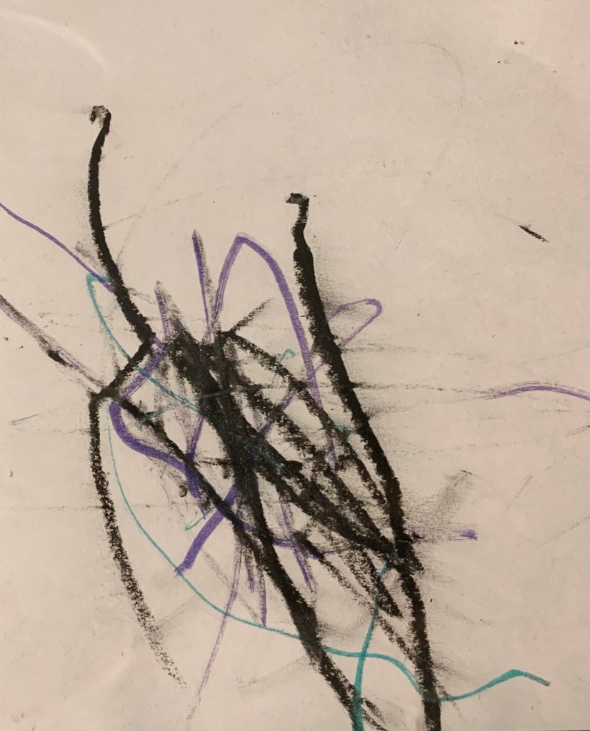 “This is sadness.” (drawing with a black pastel)
